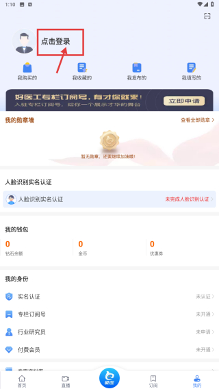 1、打开医疗行业应用,点击底部我的选项,进入个人中心页面。