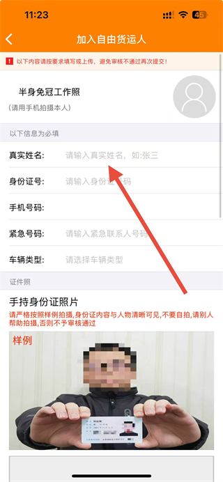 3、在申请页面填写真实姓名、身份证号、手机号码等信息,并上传半身免冠工作照、手持身份证照片。
