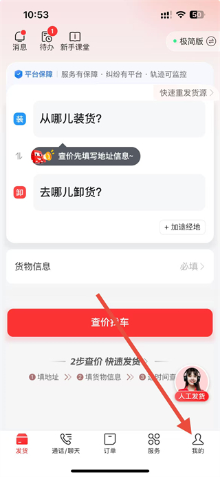 1、在运满满货主版app界面点击我的选项,进入个人页面。