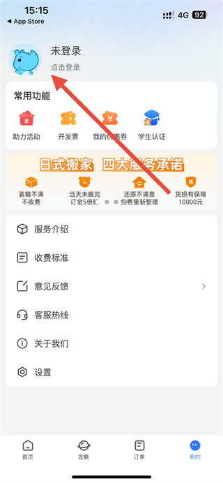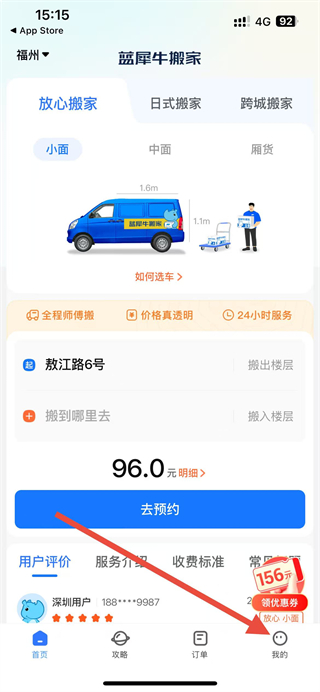 1、在蓝犀牛搬家app界面点击我的选项,进入个人页面。