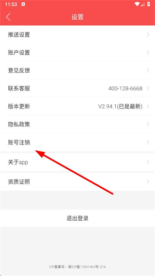 3、在设置页面点击账号注销选项,弹出注销账号确认框。