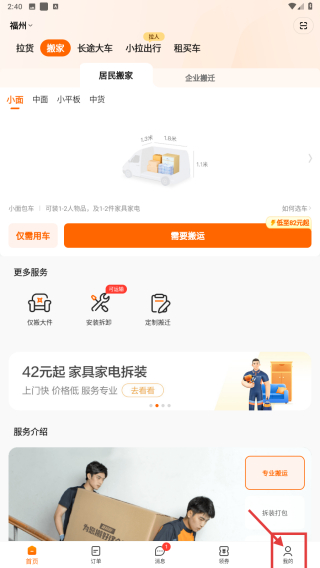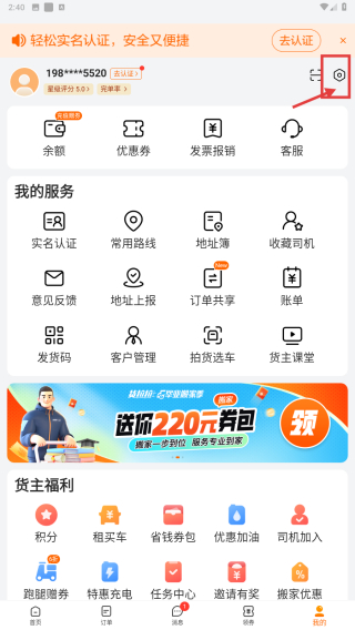 1、打开货运类应用,点击底部我的选项,进入个人中心页面。
