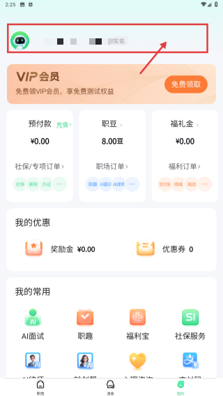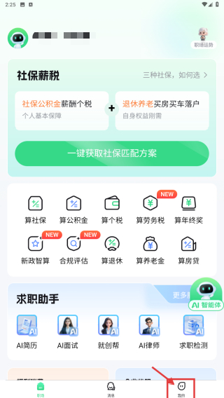 1、打开社保求职类应用,点击底部我的选项,进入个人中心页面。