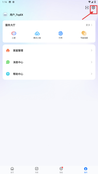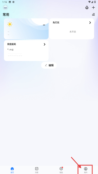 1、打开家庭类应用,点击底部我的选项,进入个人中心页面。