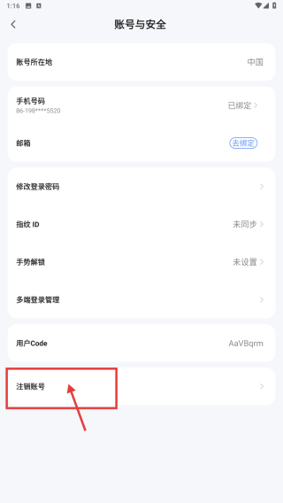 4、在账号安全页面,点击注销账号选项,提交账号注销申请。