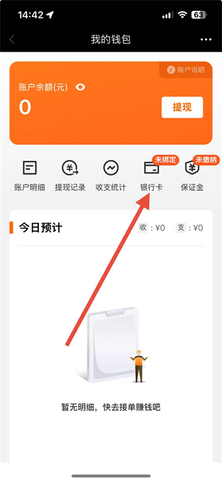 3、在我的钱包页面点击银行卡选项,进入提现银行卡页面。