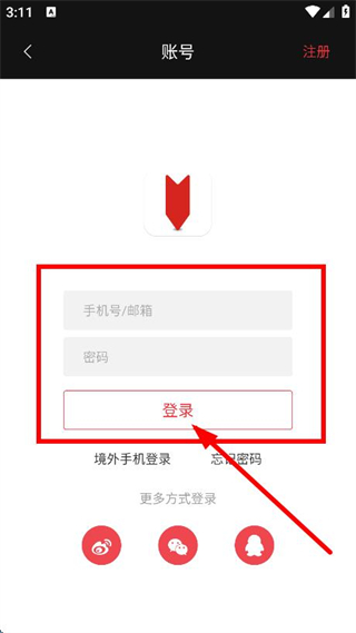 4、在账号登录页面,输入手机号/邮箱、密码后,点击登录,完成账号登录。