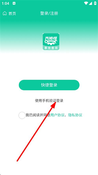 3、在登录注册页面,点击使用手机验证登录,进入验证登录信息页面。