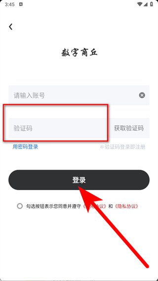 5、查看手机短信并输入收到的验证码,勾选后,点击登录按钮,完成账号登录。