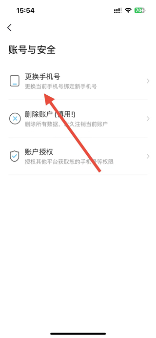 4、在账号与安全页面点击更换手机号选项,按提示完成手机号更换操作。