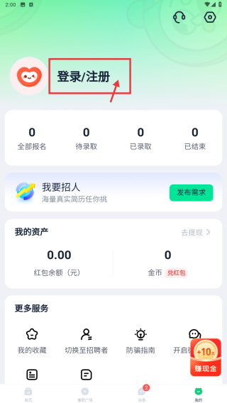 1、打开兼职类应用,点击底部我的选项,进入个人中心页面。