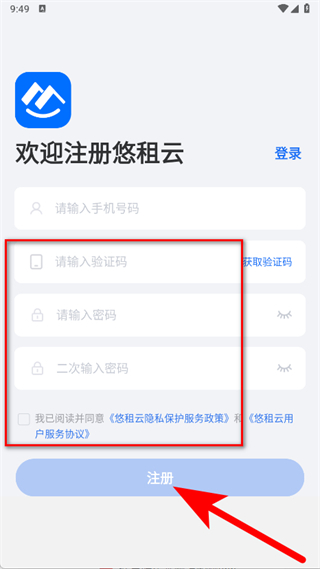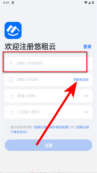悠租云app怎么注册账号