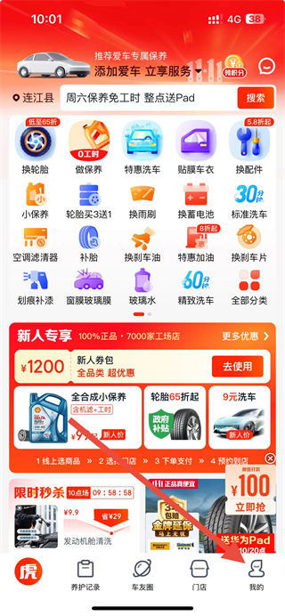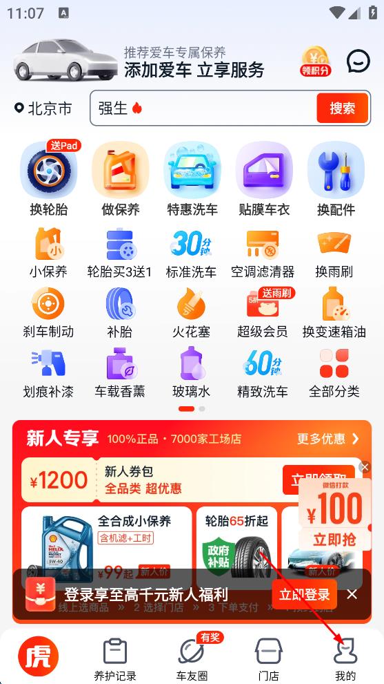 新老用户可享受“天天领红包”,各种轮胎券、保养券、车品券随机抽取!天天都能领!
