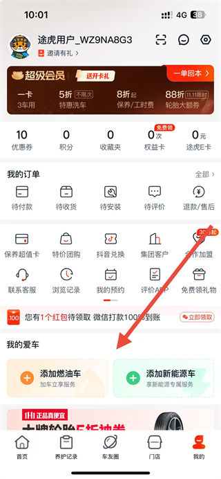 1、在途虎养车app首页点击我的选项,进入个人页面。