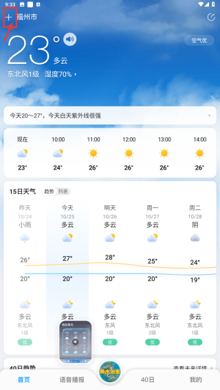 1、打开天气类应用,点击左上角城市切换按钮,进入城市管理页面。