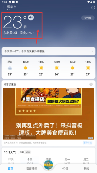 4、添加完成后,即可查看深圳市的天气信息。