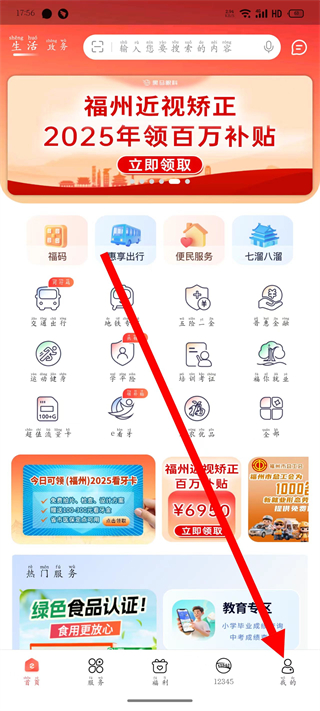 1、打开e福州,点击底部导航栏我的,进入个人中心页面。