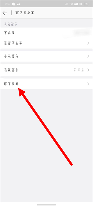 4、在账户与安全页面,点击账号注销,进入账号注销说明页面。