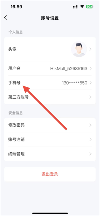 3、在账号设置页面点击手机号选项,进入修改手机号页面。