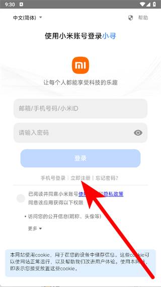 2、在设备页面,点击点击登录,进入小米账号登录界面。