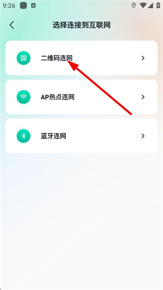 3、在连网方式选择页面,点击二维码连网,进入设备连网确认页面。
