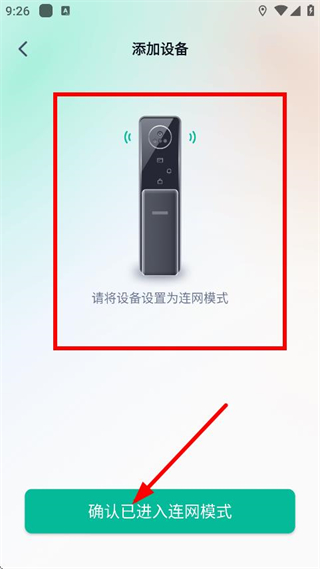 4、将设备设置为连网模式后,点击确认已进入连网模式,完成设备添加流程。