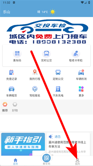 1、打开嘉州通,点击底部导航栏我的,进入个人中心页面。