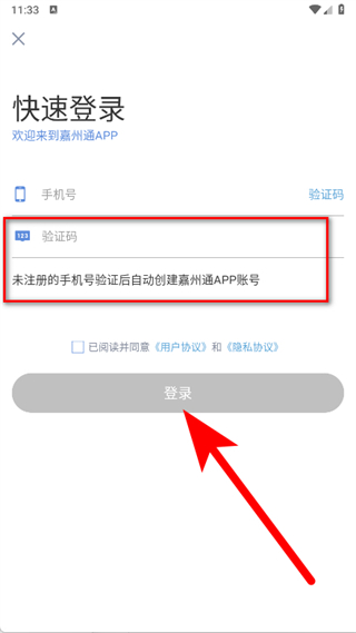 4、输入收到的验证码,勾选后,点击登录,完成账号登录。