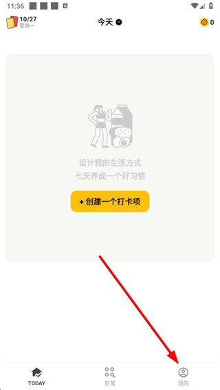 1、打开小日常APP,点击界面右下角我的图标,进入个人相关页面。