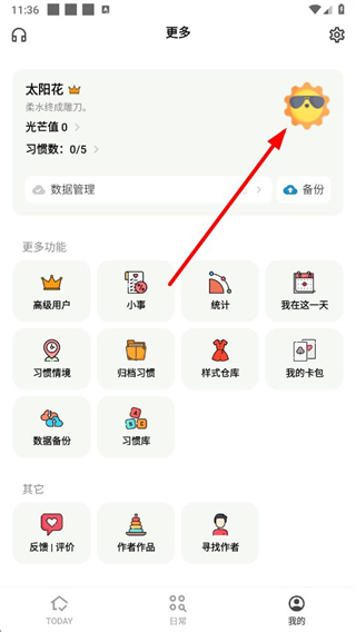 1.今天要坚持的习惯会单独呈现在TODAY页面中,轻轻一点图片即表示完成该习惯的打卡;