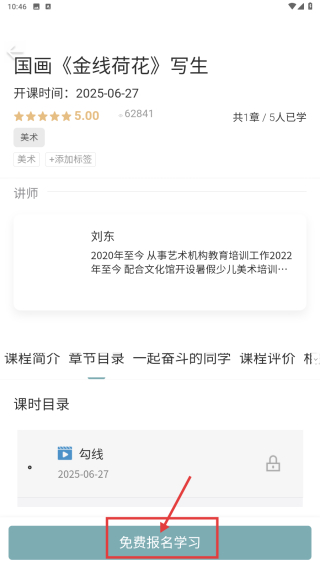 4、在课程详情页,点击免费报名学习按钮,即可完成该课程的报名。