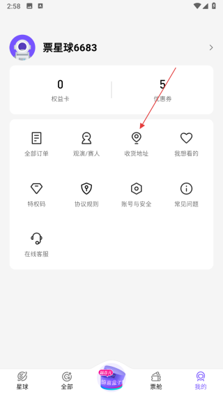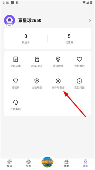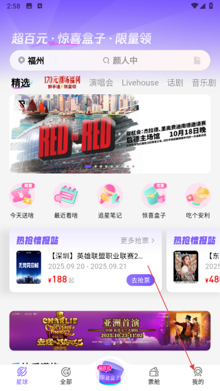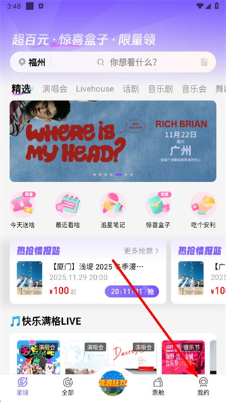 1、在票星球app首页点击我的选项,进入个人页面。