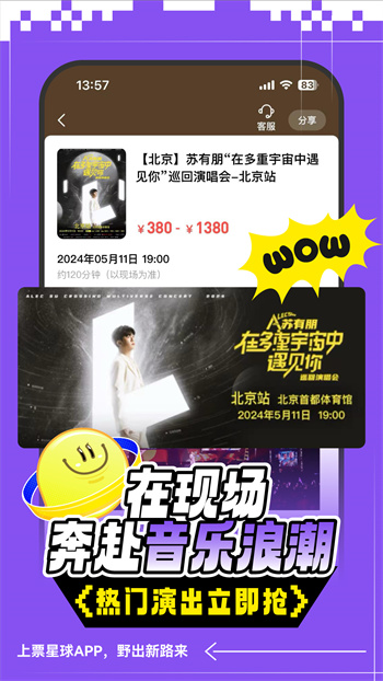 票星球app为用户提供便利的购票服务,致力于帮助每位用户安全、快捷地购买各类门票,包括演唱会、话剧、电影及各类艺术展览等,用户可通过手机轻松下单,享受透明的票务信息,避免多花冤枉钱,票星球与各大官方主办方直接对接,确保用户的购票体验既放心又实惠,有需要的可以下载使用。