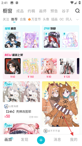 1、打开画加,点击页面右下角我的,可进入个人中心页面。