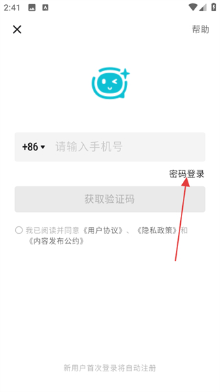3、在登录选择页面,点击密码登录可进入密码登录页面。