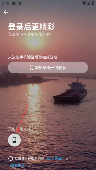 3、在登录选择页面,点击手机号登录选项,可进入手机号登录页面。