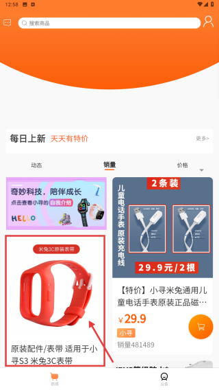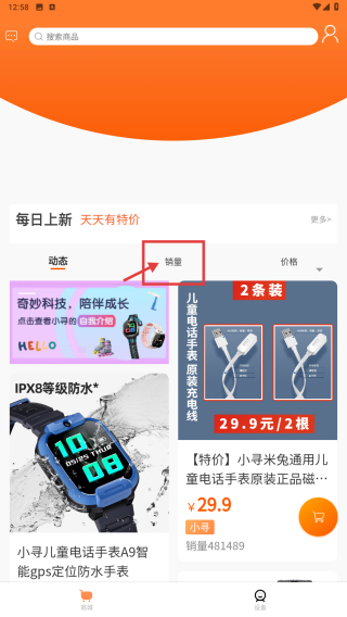 2、在商城页面,点击销量排序选项,按销量浏览商品列表。