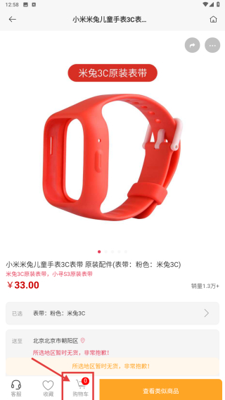 3、在商品列表里,找到原装配件表带-适用于小寻S3-米兔3C表带商品条目,点击进入商品详情页。