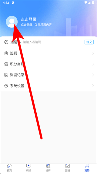 2、在个人中心页面,点击点击登录区域,进入登录界面。