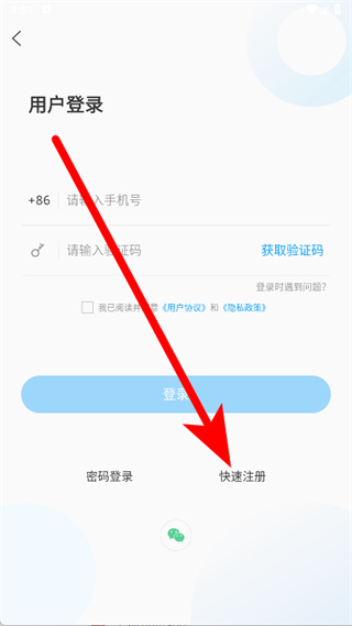 3、在登录界面,点击快速注册选项,进入用户注册页面。