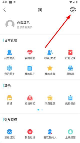 2、在我的页面点击右上角设置图标,进入设置页面。