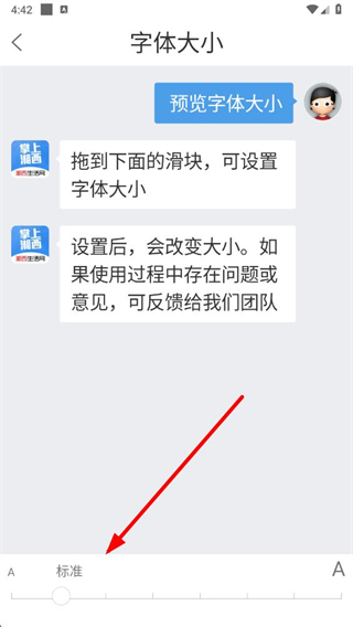 4、在字体大小设置页面拖动滑块,即可调整字体大小。