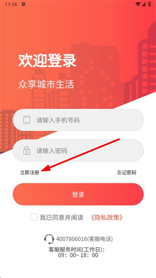 3、在登录页面点击立即注册选项,进入注册手机号输入页面。