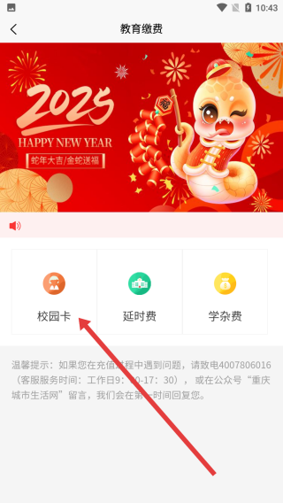 2、当我们进入教育缴费界面后,选择校园卡选项,可进行校园卡相关费用的缴纳操作。