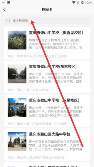 3、进入校园卡页面后,通过上方按具体学校名称搜索栏,输入你的学校名称查找对应的校园卡缴费入口。