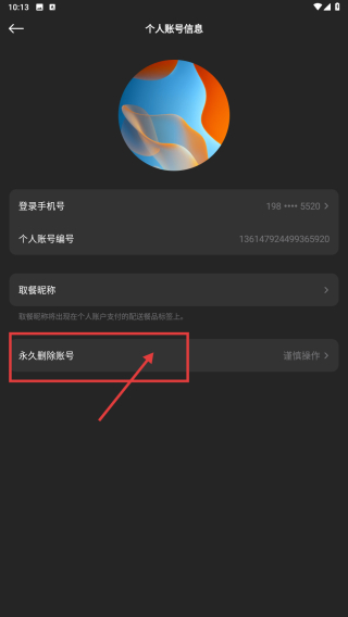 3、在个人账号信息页面,点击永久删除账号选项,进入永久删除账号页面。