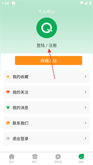 2、在个人中心页面,点击登陆注册可进入登录选择页面。