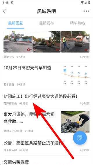 3、在凤城贴吧页面,点击感兴趣的帖子,进入帖子详情页。