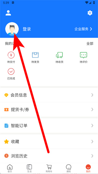 2、在个人中心页面,点击登录区域,进入登录界面。
