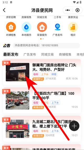 3、在服务分类页面,点击商铺转让信息,进入详情列表。